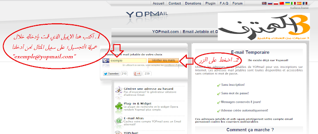 1 .عند الوصول إلى خانة وضع الإيميل تقوم بكتابة exemple@yopmail.com مع تعويض "exemple" بأي كلمة أو شيء آخر يخطر ببالك ثم تتابع عملية التسجيل.
